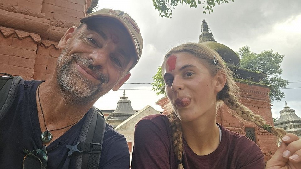 Ce soir tranquille, il faut dire que la journée a été chaudement hot, après une meilleure nuit, un correct petit déjeuner et un briefing sur un coin de table, nous prenons un taxi qui nous déposera au Stupa Budhha, temple bouddhiste avec son imposant dôme blanc, Stupa qui a donné naissance aux origines du bouddhisme tibétain. La chaleur est déjà bien présente et les places à l’ombre sont chères, nous faisons le tour de cet imposant Stupa en le gardant bien à notre droite comme la tradition oblige, l’endroit est toujours aussi impressionnant, en haut les yeux du budhha nous regardent, il faut dire qu’il voit tout, entend tout, mais ne dis rien. Le tour n’a pas été simple (je parle de Charlotte) pour tout le monde, rester à la gauche du Stupa en évitant les milliers de pigeons qui lui bloquaient le chemin, à droite le paradis Boudhhiste à gauche le cauchemar d’une ré-incarnation en volatile. Elle n’est peut-être que la ré-incarnation humaine d’un volatile qui a fini sa vie dans l’assiette d’un suceur d’os. Dans tous les cas « personnage curieux et étrange… ».